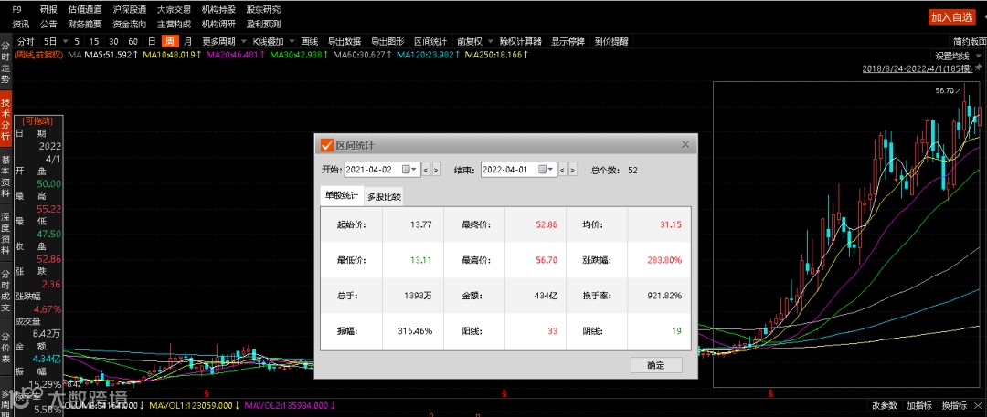截至4月1日收盘,新莱应材股价收于52.86元/股,总市值119.8亿元,动态市盈率达74.48倍。一年间股价最大涨幅逾310%。