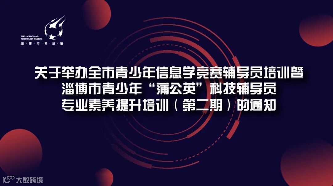 为进一步提高全市中小学信息学竞赛辅导水平,交流分享中小学信息学竞赛辅导策略和方法,培养信息学拔尖后备人才,经研究决定组织全市青少年信息学竞赛教练员培训暨淄博市青少年“蒲公英”科技辅导员专业素养提升培训(第二期),具体事宜通知如下: