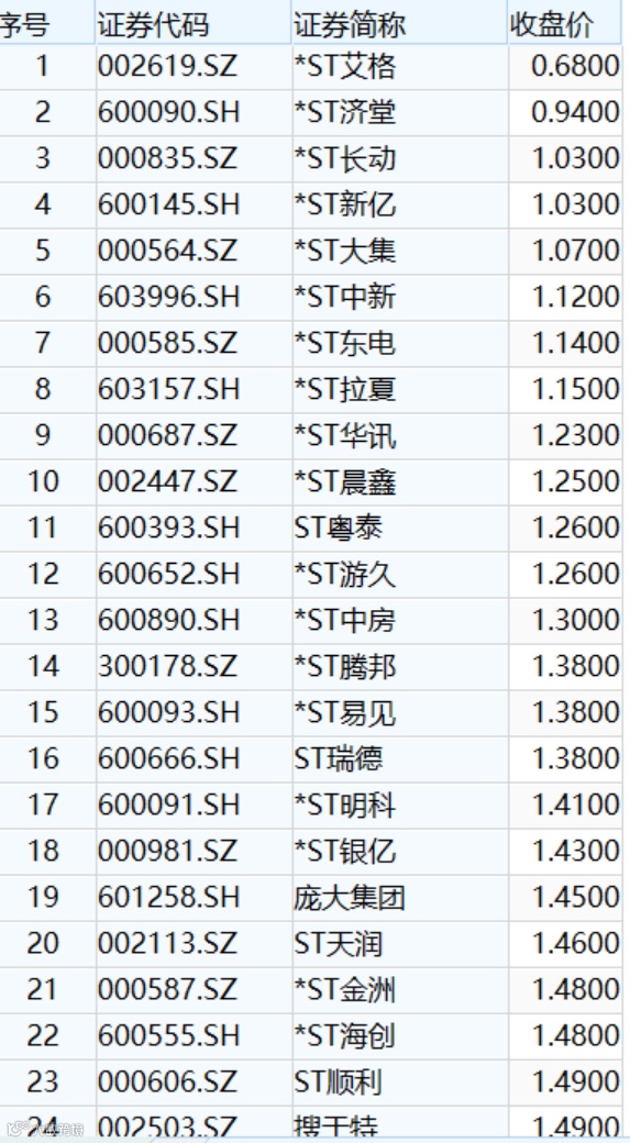 Wind数据显示,截至3月25日收盘,股价低于1.5元且在交易状态的股票共有24只。