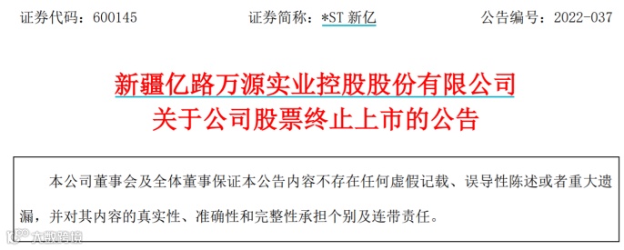 3月22日,*ST新亿公告,收到上交所终止公司股票上市的决定,公司因财务造假行为被上交所实施重大违法强制退市,成为2022年A股首家退市公司。