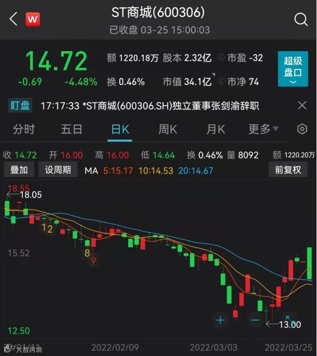 本周五,“*ST商城”证券简称变更为“ST商城”,正式撤销退市风险警示并继续实施其他风险警示,暂时摆脱了退市危机。