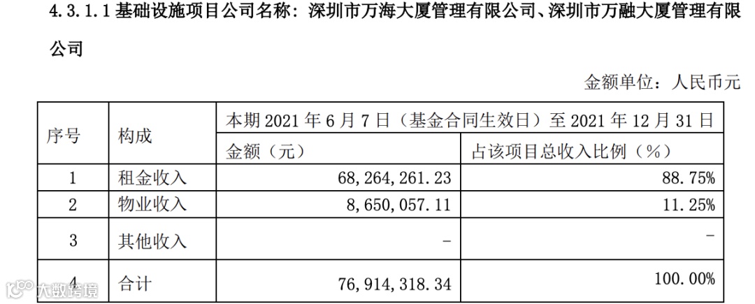 截至2021年12月31日,博时蛇口产园REIT累计实现营业收入7691.42万元,其中租金收入占88.75%,物业收入占11.25%;全年累计预算完成率95%;年末租金收缴率为99%。