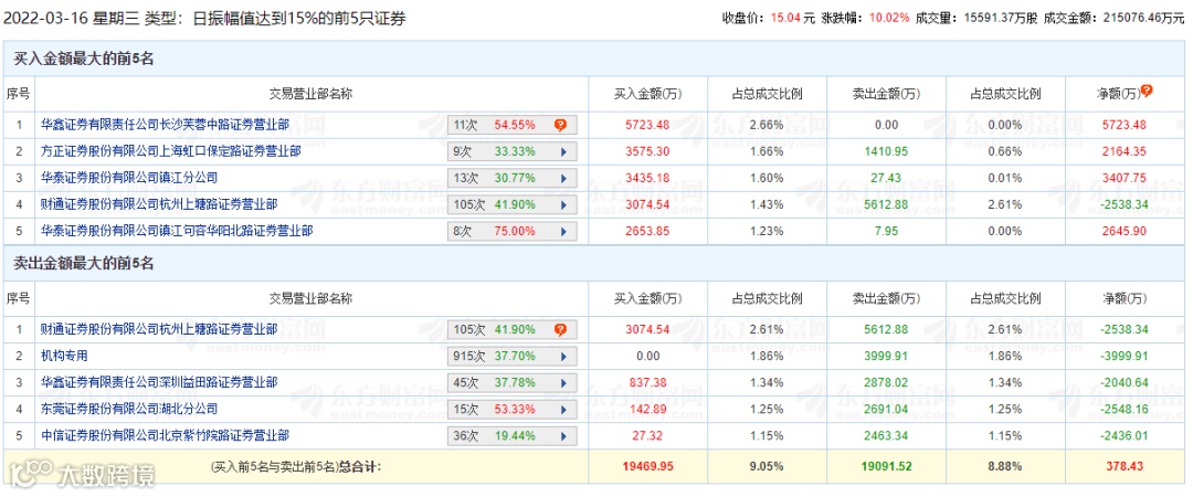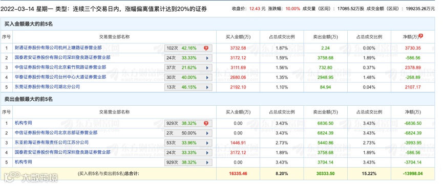 3月16日,龙虎榜数据显示,1家机构专用席位净卖出3999.91万元。