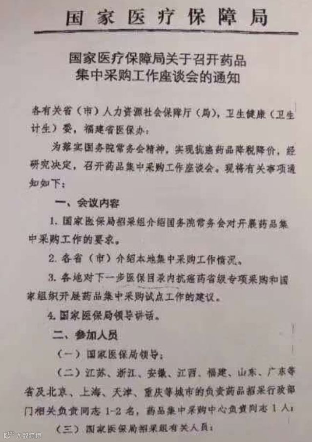 近日,行业流传一份国家医疗保障局《关于召开药品集中采购工作座谈会的通知》。