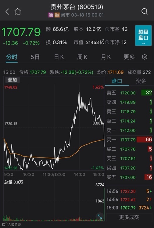 贵州茅台、宁德时代尾盘被砸