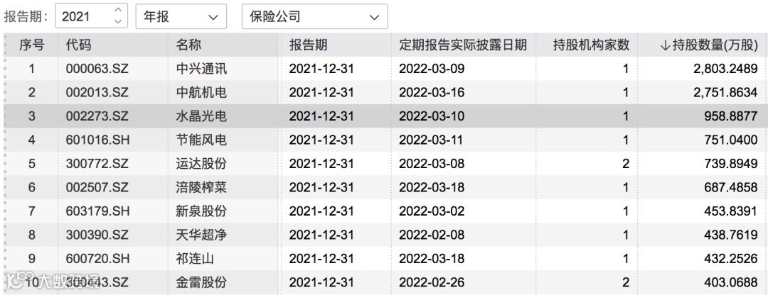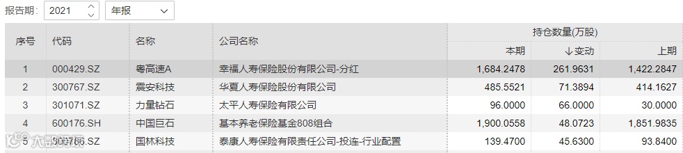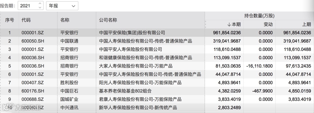 随着2021年上市公司年报陆续披露,险资持仓情况也浮出水面。截至3月21日,在已披露年报的上市公司中,有42家保险机构和产品的身影出现在上市公司前十大股东名单中。