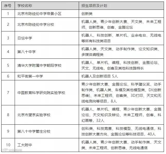 西城区科技特长生