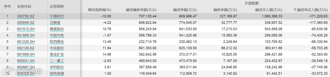 2月融资客减仓居前的10只股票分别为宁德时代、五粮液、隆基股份、中国中免、陕西煤业、中环股份、紫金矿业、三一重工、伊利股份、国电南瑞,分别净卖出17.12亿元、11.74亿元、8.56亿元、7.44亿元、6.63亿元、5.87亿元、5.24亿元、3.85亿元、3.77亿元、3.36亿元。从市场表现上来看,这10只股票2月份涨多跌少,跌幅最大的宁德时代2月份累计下跌10%,涨幅最大的紫金矿业2月份累计上涨14.96%。