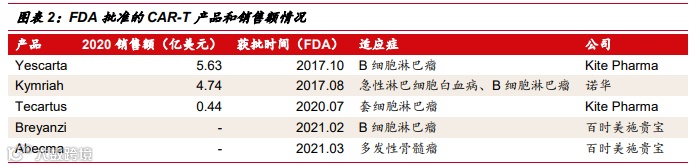 根据国联证券研报,截至2月,FDA批准的CAR-T产品为5个,除了百时美施贵宝(Abecma)为BCMA靶点的产品外,其他4个均为CD19靶点的产品。