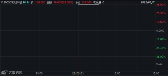 今天上市的天奈转债,开盘前的竞价阶段就涨38%,开盘即临停。