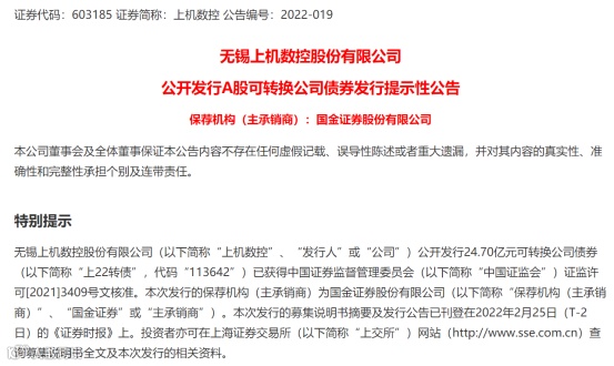 业内最早的光伏专用设备生产商之一上机数控今天发行24.7亿元可转债——上22转债。机构预计,该转债上市首日涨幅可能超过30%,建议积极申购。