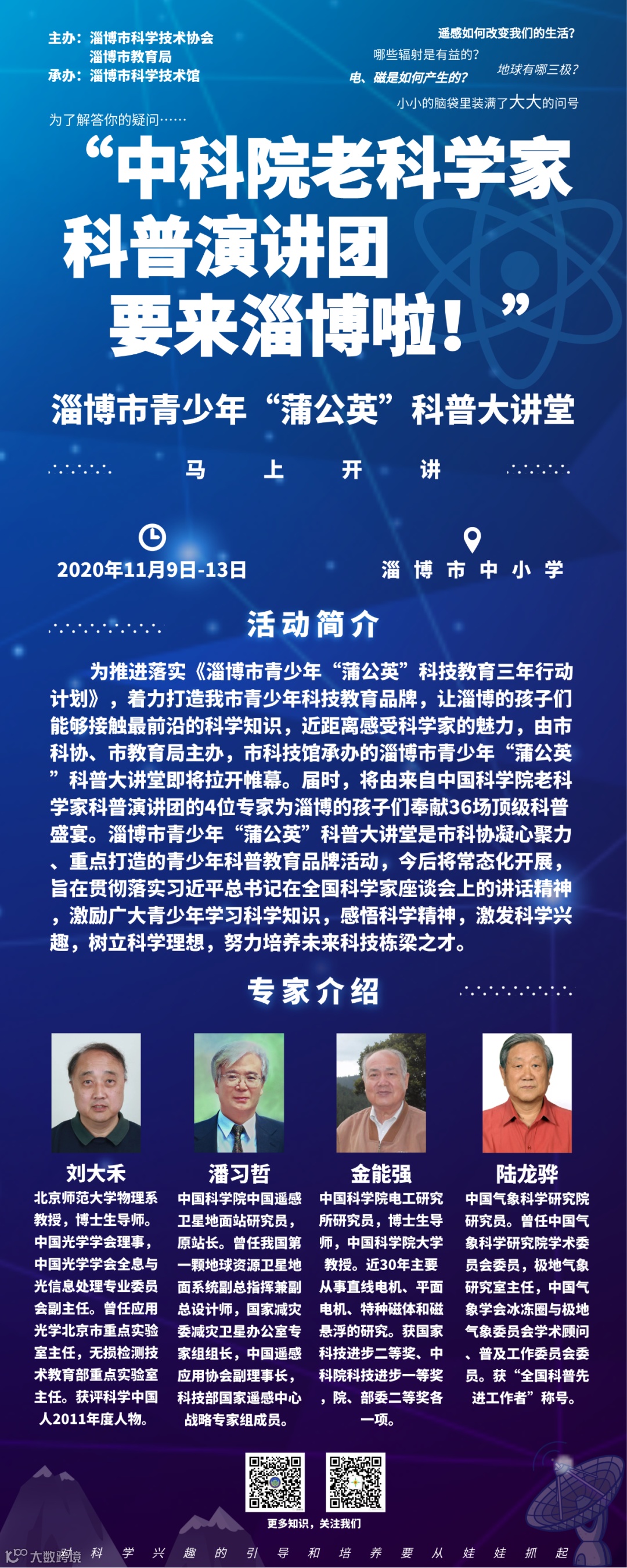 “中科院老科学家科普演讲团要来淄博啦!”