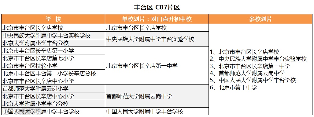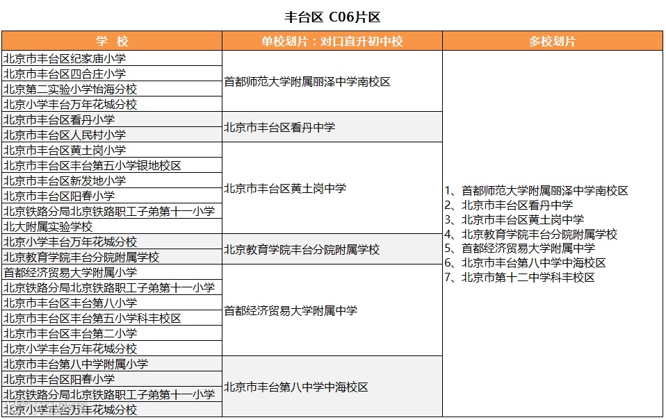 丰台小升初:理论上单校划片看“房产”,多校划片看“学籍”。科乐维科技教育依据2020年小学划片对应初中及学校,整理出丰台区7大片区95所小学单校划片及多校划片对应初中学校名单,仅供参考: