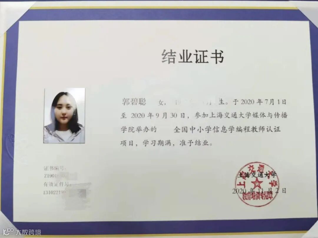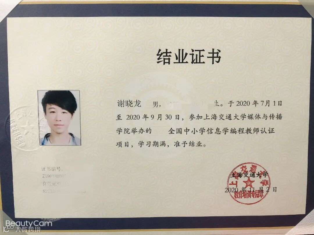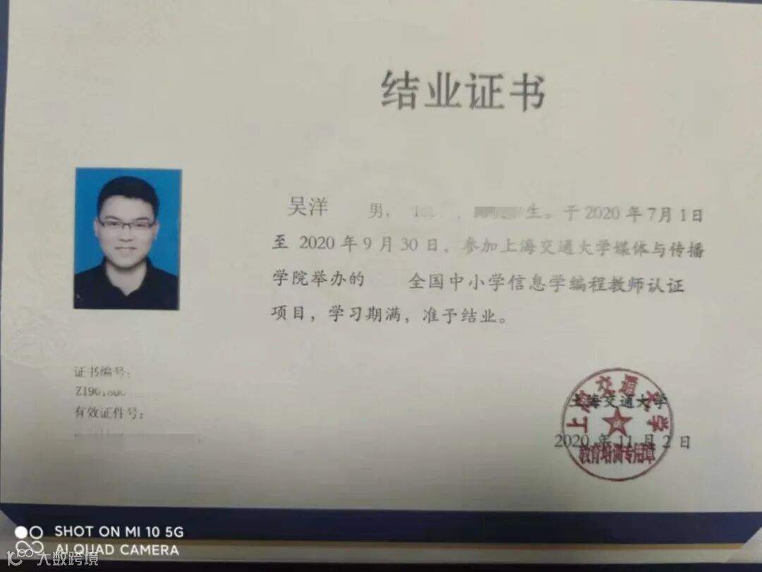 2020年9月28日至30日,全国中小学信息学教师研讨会在上海人工智能研究院顺利举办,科乐维科技教育有郭碧聪、吴春杰、吴洋、谢晓龙四位老师参加了此次研讨,并获得上海交通大学“全国中小学信息学编程教师认证”证书。