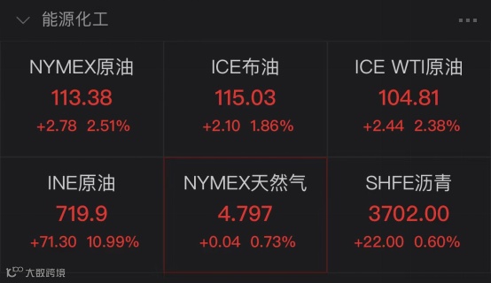 纽约原油期价和布伦特原油期价分别上涨2.51%、1.86%,报每桶113.38美元及115.03美元。
