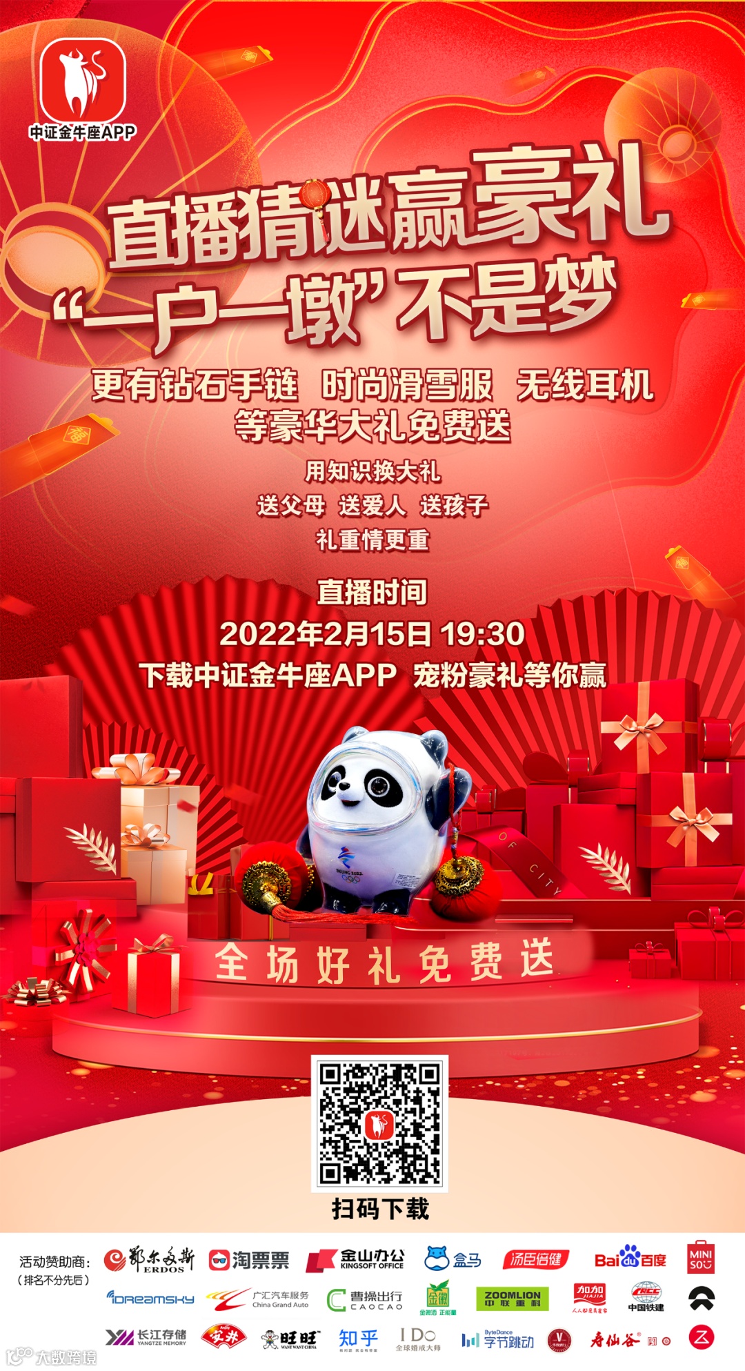 除此之外,中证金牛座APP联合20多家公司,准备了上千份豪华大礼回馈投资者,单品价值不菲,最高可达4000元!还有机会让你实现“一人一墩”的梦想!