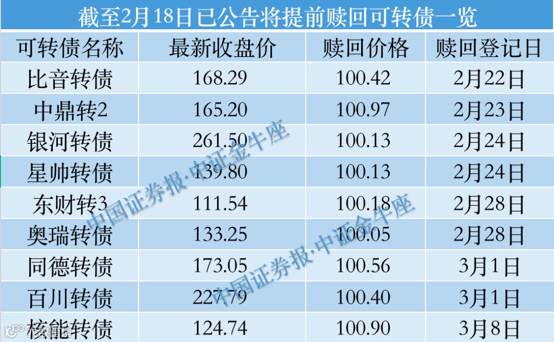 此外,接下来还有2月28日的东财转3和奥瑞转债,以及3月初的百川转债、同德转债、核能转债,将被提前赎回。