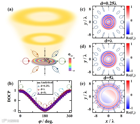 具有特定波前和空间偏振态分布的矢量光场因其具有不同于传统标量光场的独特性质,而广泛被应用于超分辨成像,光操控等诸多领域。然而基于传统光学系统(如螺旋相位波带片,空间光调制器)实现复杂矢量光场,往往需要比较厚重的光学器件和复杂的光学系统。其根本原因是由于传统自然材料在光波段只具备电响应,且其介电常数的取值范围也非常有限。因此,基于自然材料构建的传统光学器件只能依赖材料厚度积累一定的传播相位来实现相应的功能性调控。另外,要实现更为复杂的多功能矢量光场调控,需要同时实现对波前和局域偏振态分布的调控,这也使得光学系统变得更为复杂、厚重而且低效。