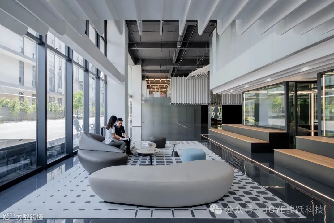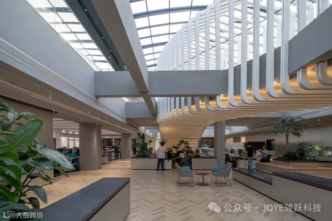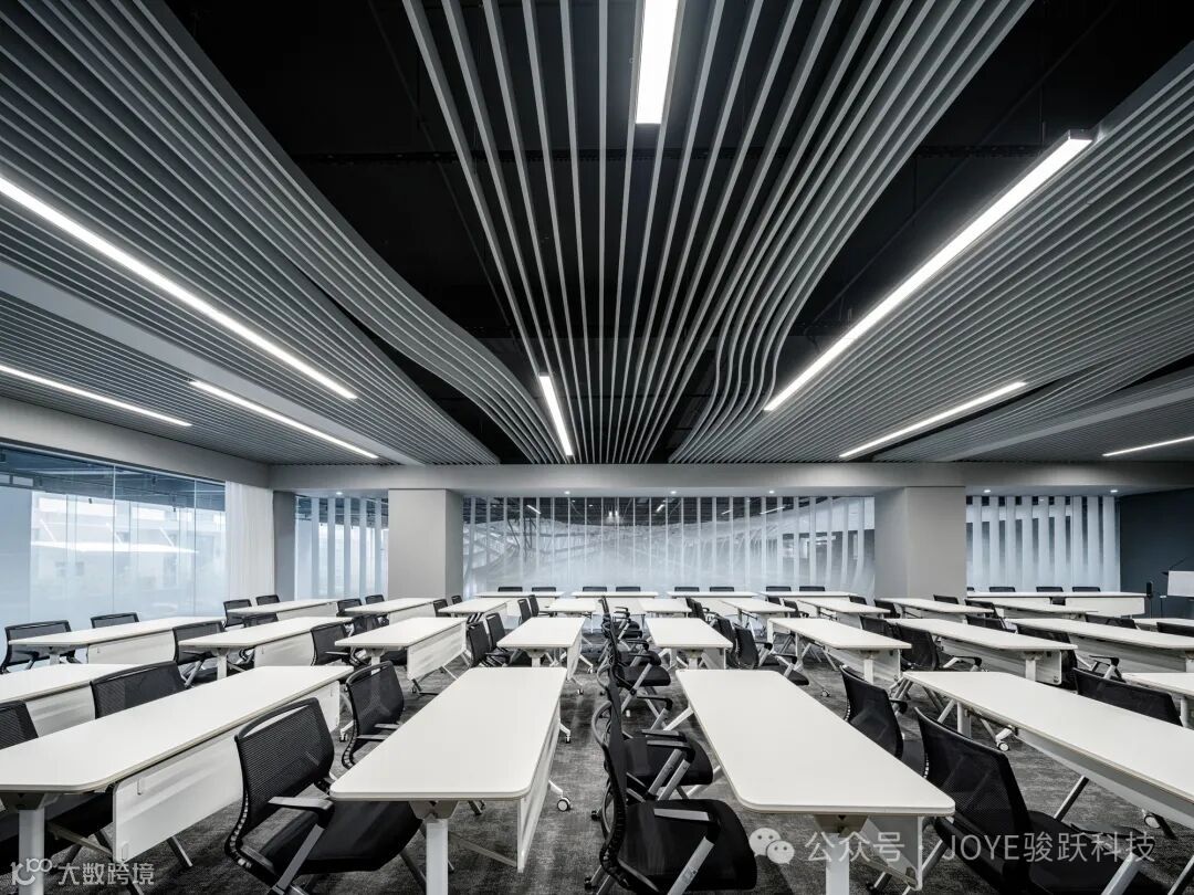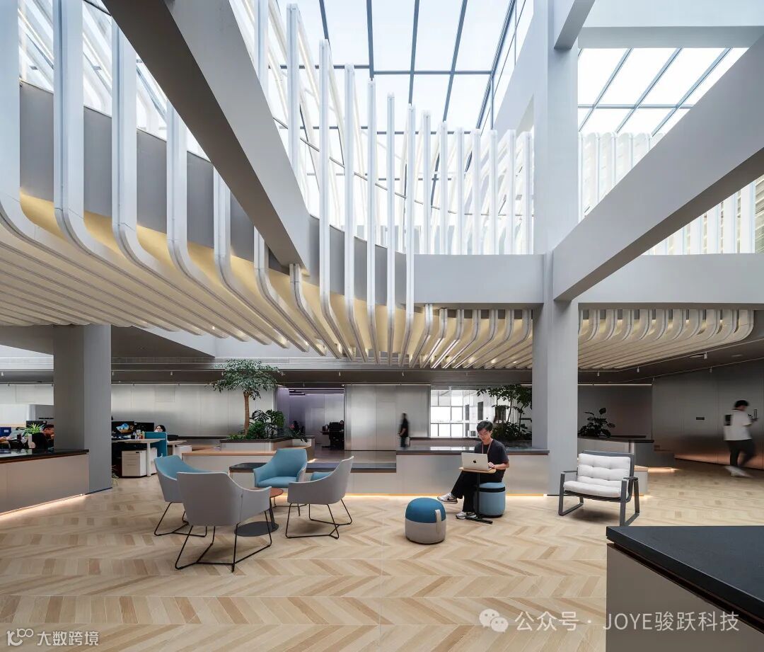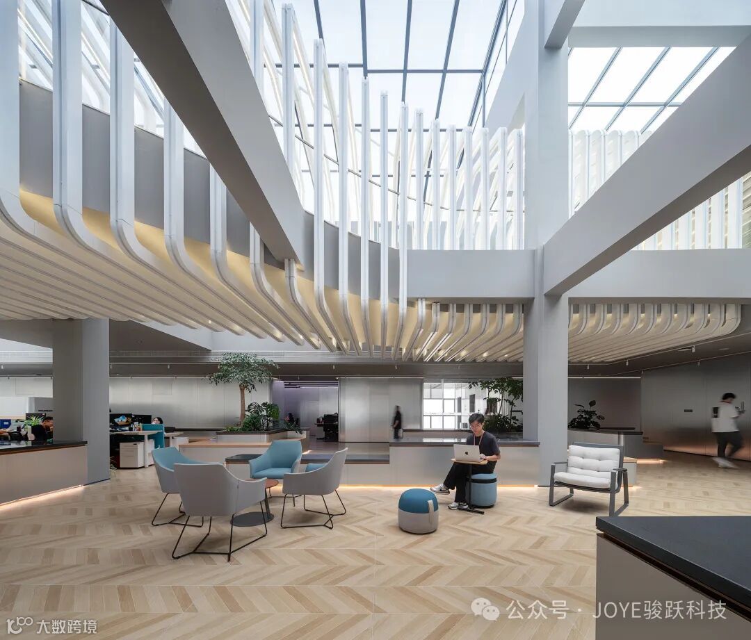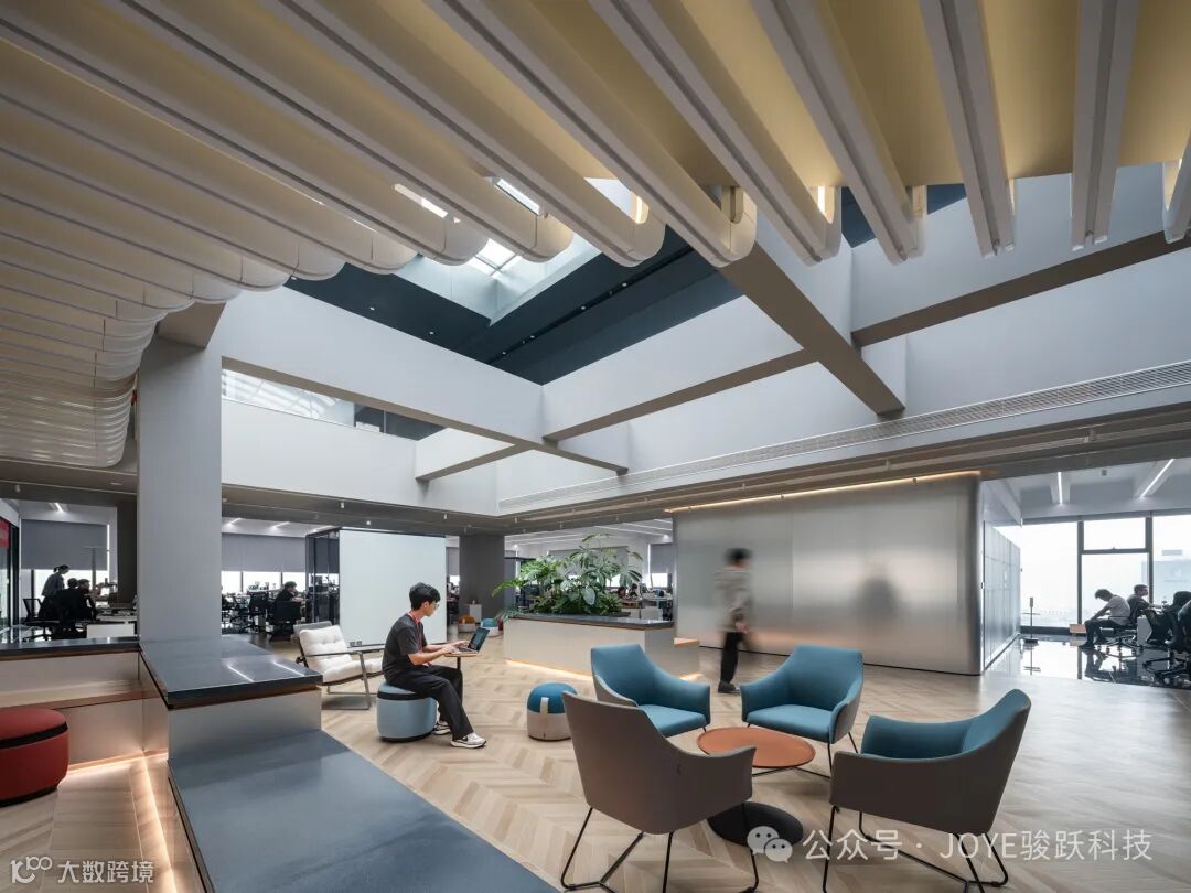 骏跃科技总部的空间布局充分考虑了现代办公的需求,不仅设置了宽敞的开放式办公区,还配备了多个会议室、洽谈室和休息区。开放式办公区采用了灵活的布局设计,可以根据不同团队的需求进行调整,既保证了团队协作的高效性,又兼顾了个人工作的私密性。