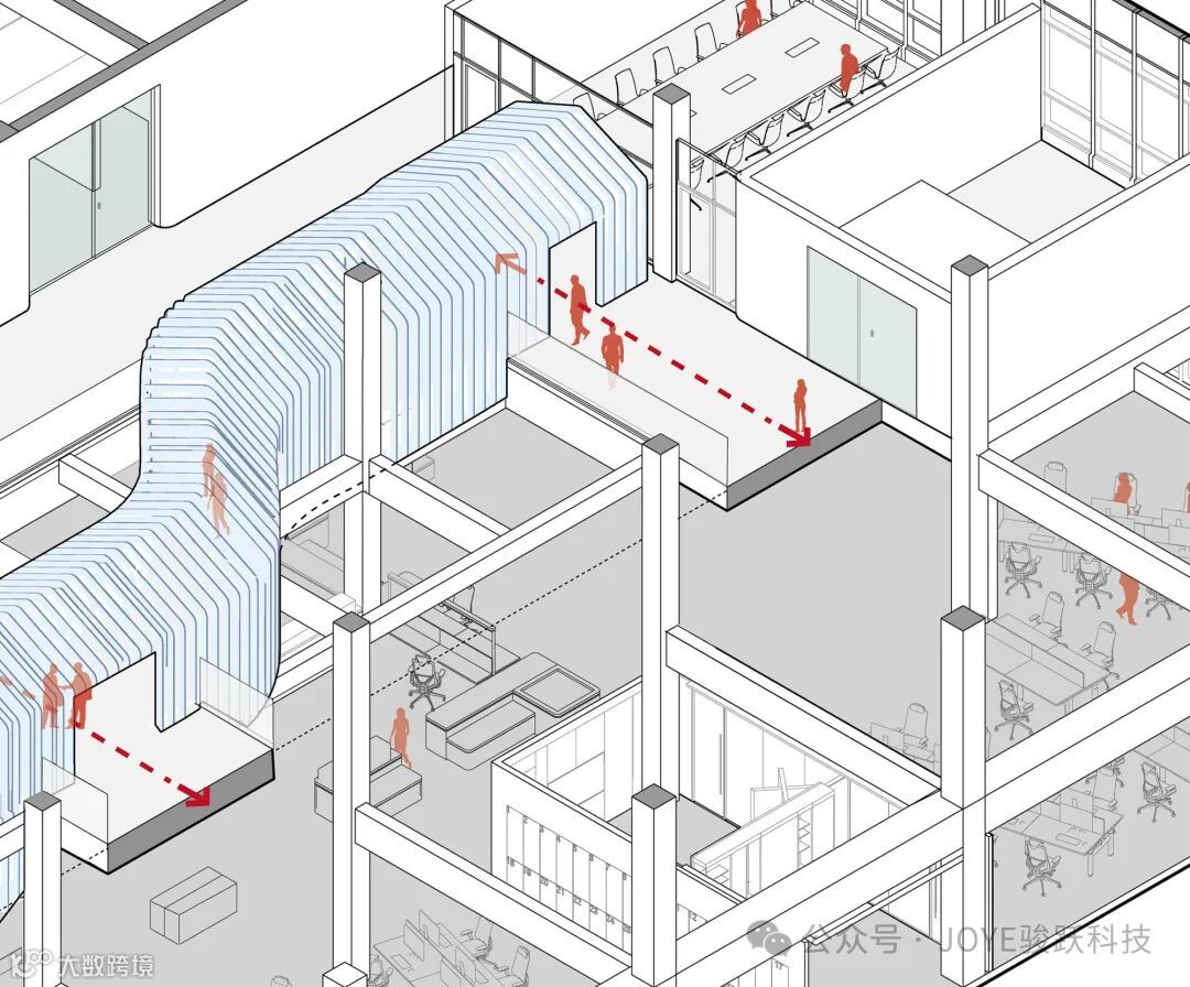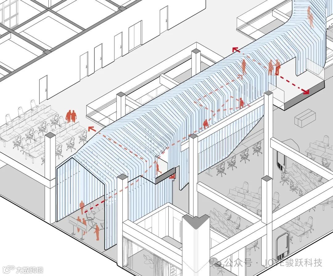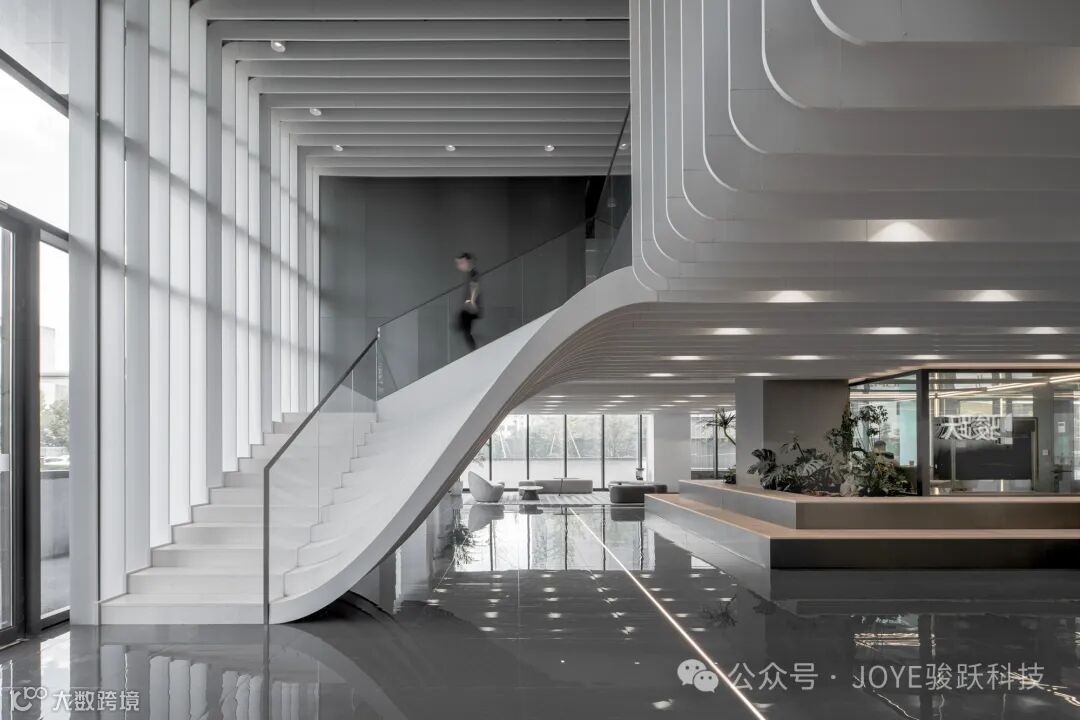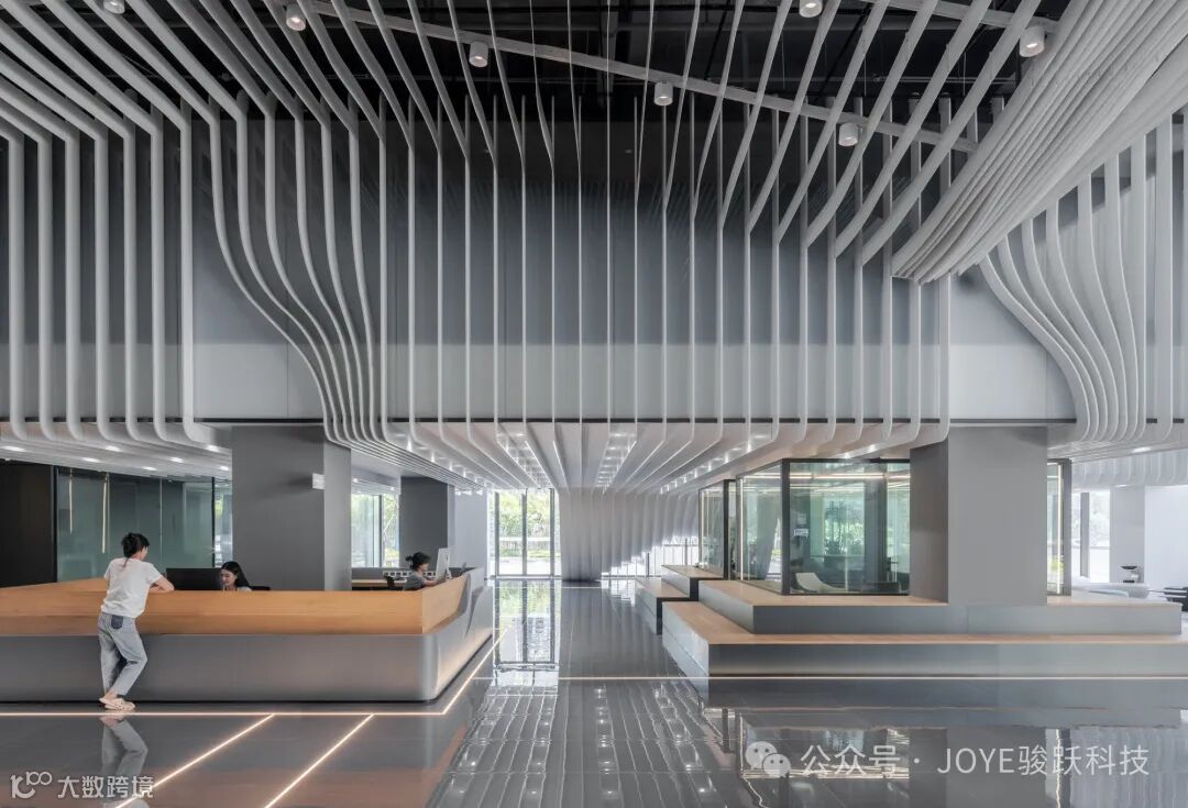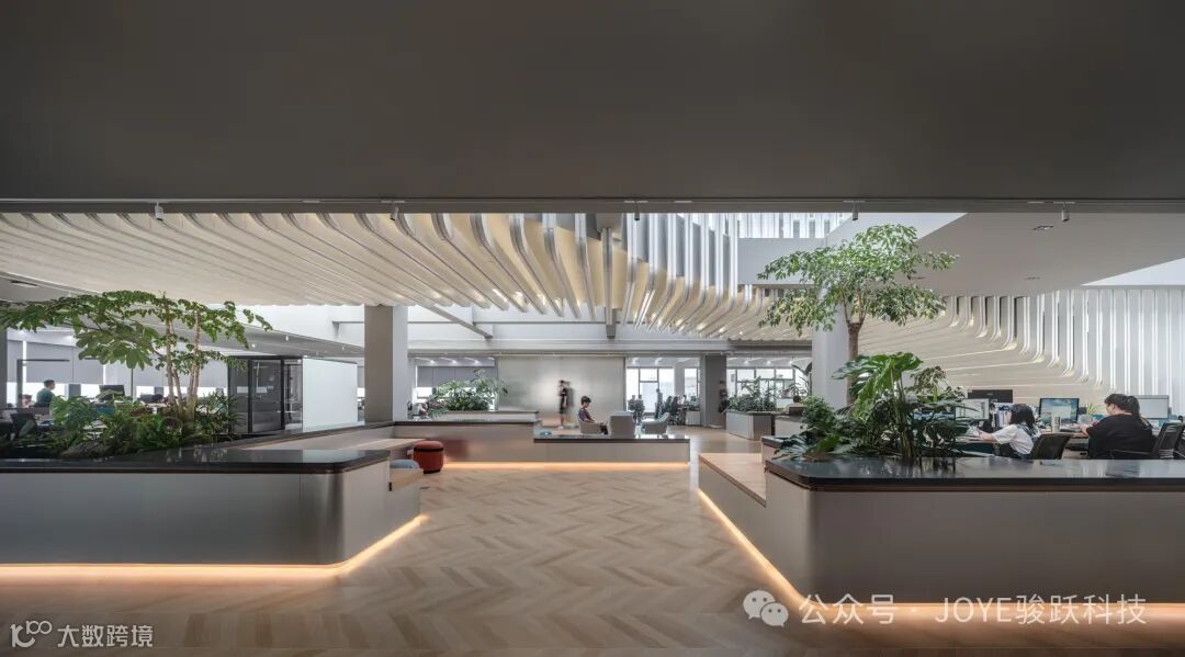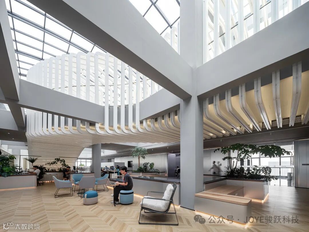 骏跃科技总部的空间布局充分考虑了现代办公的需求,不仅设置了宽敞的开放式办公区,还配备了多个会议室、洽谈室和休息区。开放式办公区采用了灵活的布局设计,可以根据不同团队的需求进行调整,既保证了团队协作的高效性,又兼顾了个人工作的私密性。