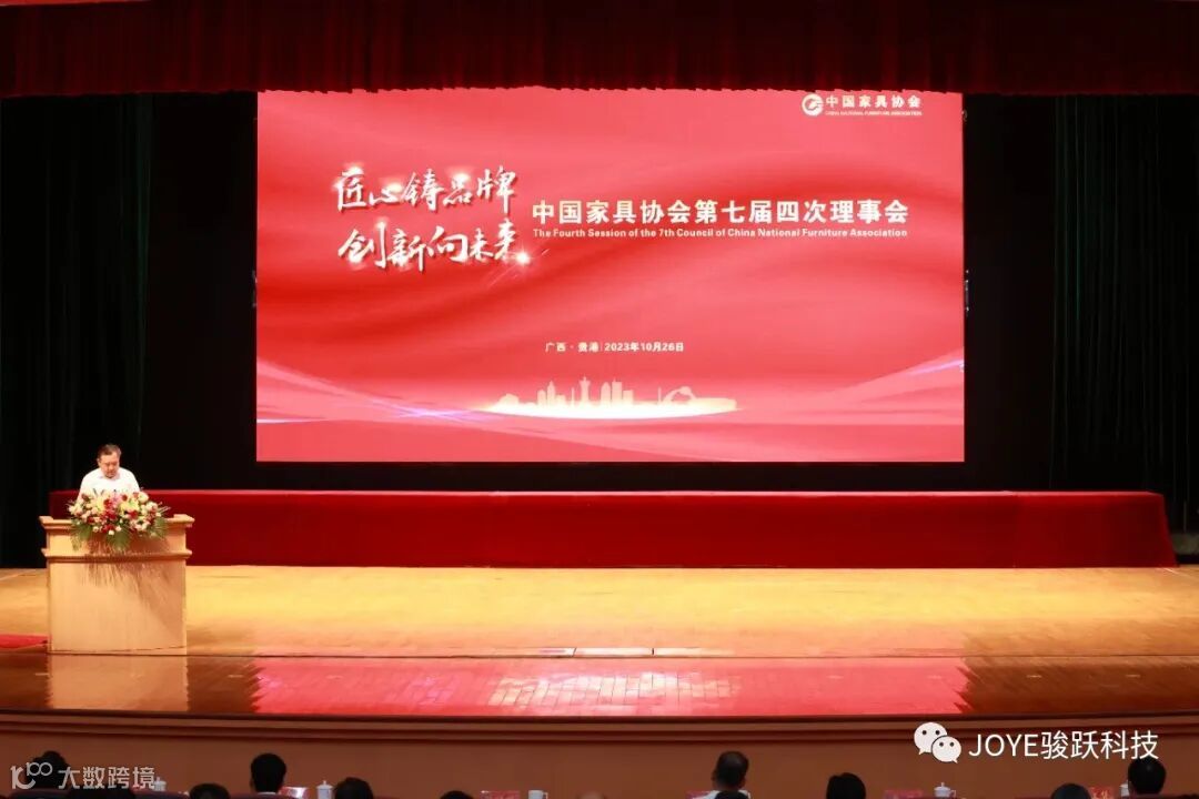 10月26日,中国家具协会第七届四次理事会暨广西高端绿色家居产销对接会在贵港市隆重举办,本次活动为期三天,意在推进中国家具协会与贵港市共建中国家具产业集群,构建现代化家具产业体系,培育全球化家具品牌矩阵,推动行业融合、智能、健康、绿色发展。