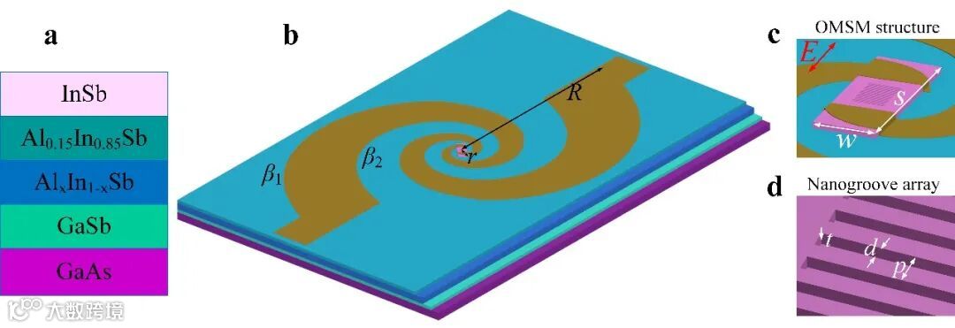 基于上述新型的探测原理,本文利用分子束外延生长技术,得到了高质量的基于InSb半导体的探测器件 (图1)。一方面该种方法生长的InSb具备很高的迁移率,能够实现快速及高灵敏度探测。另一方面,该方法可以扩展至线列乃至面阵列,实现毫米和太赫兹波段的焦平面成像。基于半导体的核心毫米及太赫兹波焦平面探测是目前急需解决的重大问题。