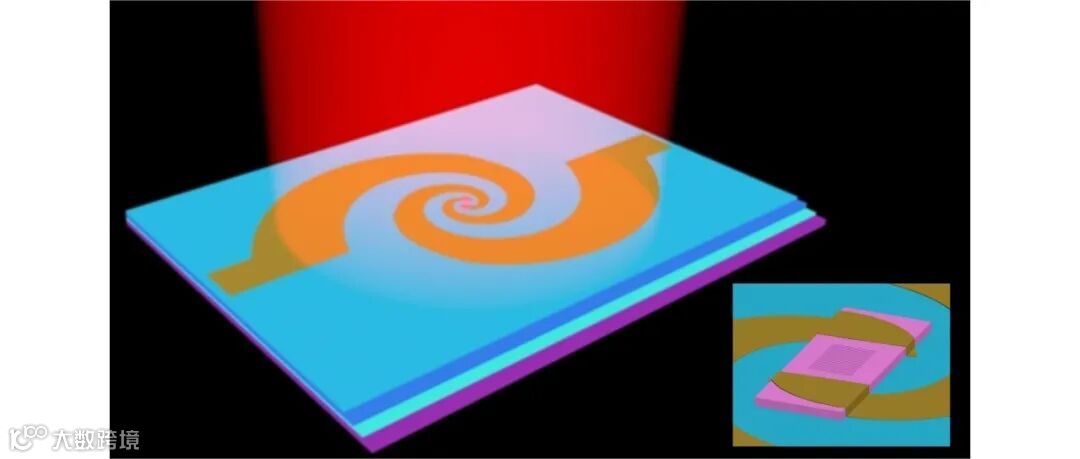 为了实现宽波段的毫米及太赫兹波探测,一方面InSb的负性介电常数可以一直保持到约3 THz, 另一方面,本文采用了一种宽波段耦合的平面螺旋天线(图1),通过参数设计,该天线可以实现宽波段的毫米及太赫兹波耦合。