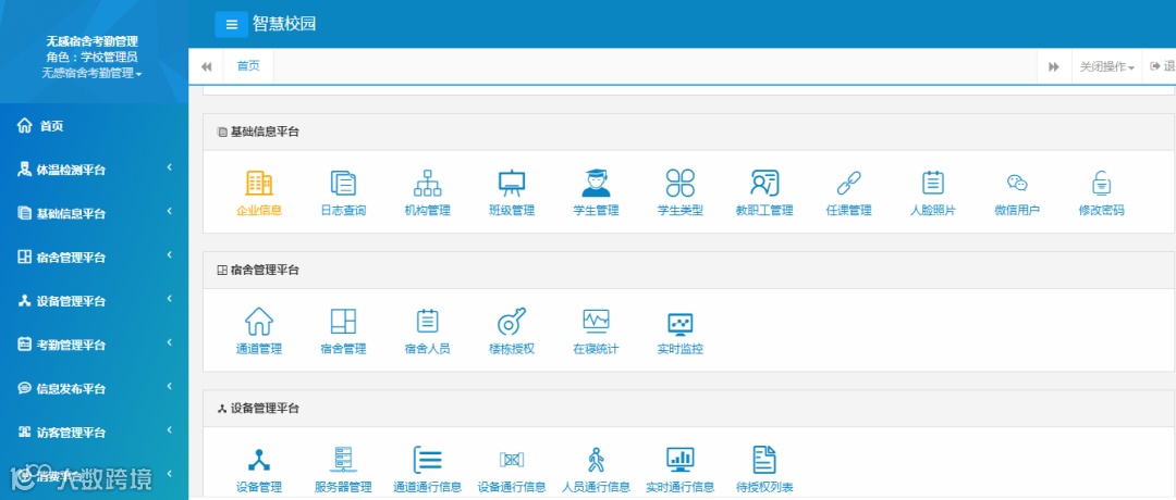 ISP云平台是公司针对智慧校园的管理环境推出的云平台管理系统,根据智慧校园的各个管理子模块,依次由终端设备、数据分析、数据比对、应用服务等多个层级架构,可以高效快速实现消费数据采集与交互处理、人脸图像高密对比、行为识别的结构化处理以及不同主体间的信息交流。ISP云平台适用于中小学校、幼儿园以及各类教育机构场景。