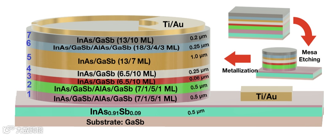 图一:长波红外II型超晶格光电晶体管结构示意图