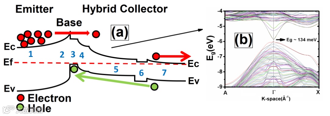 长波红外的替代商业技术包括以氧化钒或非晶硅为基础的光电探测器,它具有高温操作、与CMOS技术的兼容性和低制造成本等优点。然而,由于检测波长的可调性有限、灵敏度差、响应速度慢等缺点,这些光电探测器的应用受到了限制。一个很有前途的替代APDs实现高光转换增益的方法是,将现有的检测器与异质结双极晶体管(HBTs)集成在一起,创建异质结光电晶体管(HPT),它们能够在低偏置电压下工作。然而,这仅限于短波和近红外探测。一种很有前途的材料显示了将异质结光电晶体管推入长波红外的潜力,这就是II型超晶格。II型超晶格是一种发展中的材料体系,具有优异的生长均匀性和特殊的能带结构(见图二)。