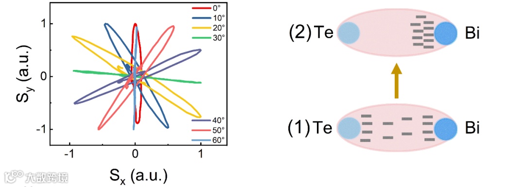 当飞秒激光泵浦拓扑绝缘体Bi2Te3时,材料中的Bi-Te原子间电子密度会经历超快重新分布的过程,形成瞬态转移电流(Shift Current),产生线偏振太赫兹辐射。由于Bi2Te3属于三重旋转对称性结构,产生的线偏振太赫兹波的偏振角与样品方位角呈现三倍依赖关系。该过程被称为线光伏效应(Linear Photogalvanic Effect)。通过控制泵浦激光的偏振方向和样品的方位角,可以控制太赫兹辐射的偏振方向。