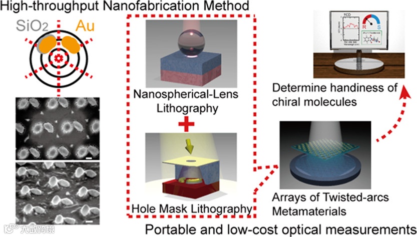 近日,台湾成功大学Shih-Hui Chang和Yun-Chorng Chang团队提出了一种快速测定手性药物“沙利度胺”的光学方法。该方法是采用纳米球透镜光刻和孔掩模光刻相结合的新方法制备的三维扭曲超构材料阵列。该方法生产效率高,且扭曲超构材料覆盖面积大。在近红外区域观察到较强的圆二色性响应,这使得利用低成本便携式光谱仪系统进行手性检测成为可能。所提出的纳米制备方法显著提高了纳米球透镜光刻和纳米球透镜光刻的性能,可快速适应于各种周期性三维超构材料的制备。此研究结果也为纳米光子学在医药行业的快速渗透铺平了道路。相关研究发表在《ACS Applied Materials & Interfaces》上。(徐锐)