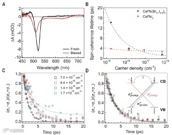 图4:钙钛矿纳米晶中的瞬态响应与自旋弛豫动力学