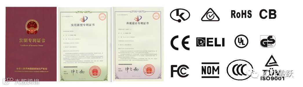 JOYE骏跃拥有发明专利6项,实用新型专利52项,外观专利50项;产品通过3C、UL、CE、FCC、ROSH等认证。