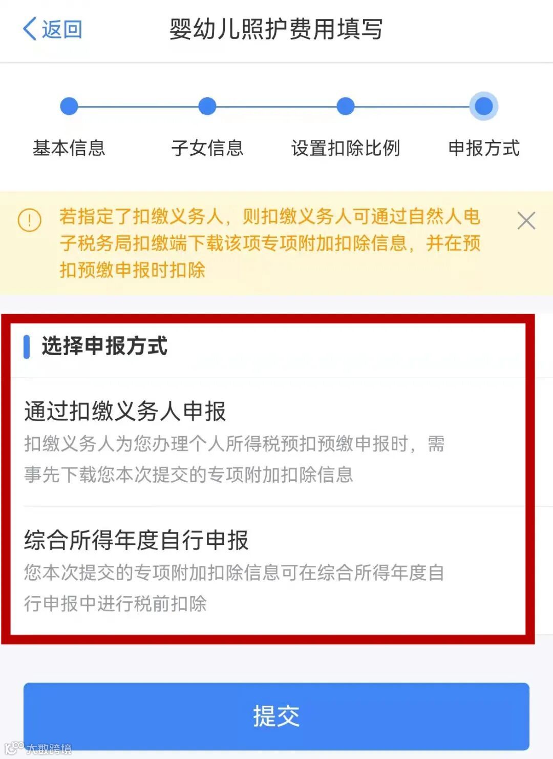 注意:如选择“通过扣缴义务人申报”,将在每月发工资时享受此项专项附加扣除,今年前几个月没有享受到的扣除,会在以后月份发工资时一次性补充扣除。