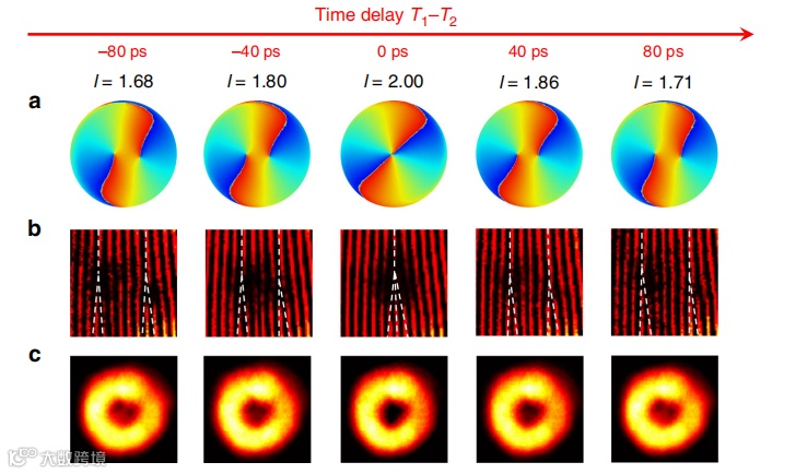 带分数轨道角动量的结构光片上集成激光器(FOAM)在光通信和量子信息处理技术前沿发展领域有迫切需求。近日,美国宾西法尼亚大学电子与系统工程系 Liang Feng教授团队研究了基于控制脉冲诱导的整数激光涡旋快速瞬态混合的半导体涡旋微激光器对分数轨道角动量的快速控制。虽然集成的涡旋光束发生器已经在不同的光学环境中演示过,但适用于高速光通信和计算的具有低功率控制的分数轨道角动量光的超快控制和扫描仍然具有挑战性。在100ps的时间窗内,电荷0和电荷+2之间出现了连续的分数轨道角动量扫描,最终的速度极限由增益介质中的载流子复合时间确定。该研究结果提供了一个新的途径来产生涡旋微激光器携带分数轨道角动量,可以通过一个超快控制脉冲在GHz频率切换。相关成果以“Ultrafast control of fractional orbital angular momentum of microlaser emissions”为题于2020年10月21日在国际光学顶尖期刊《Light: Science & Applications》上发表。