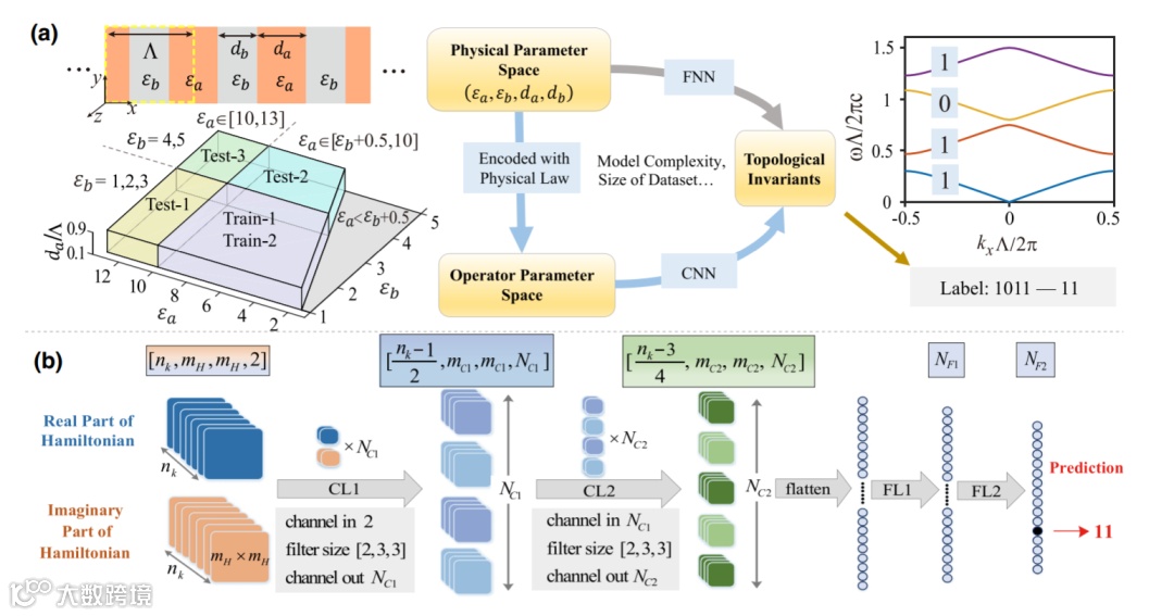近日,来自华中科技大学的研究小组引入了操作参数空间和物理适应性神经网络的概念,以丰富输入训练数据的复杂性,从而显著提高了神经网络的预测能力,尤其是外推能力。在一维(1D)光子晶体(PC)中证明,在监督学习的方案内,在操作参数空间中训练的,适应物理学的NN能够以99.72%的准确率预测光子带的拓扑不变量。对于位于训练数据集物理参数空间之外的几何构型,该方法可以预测一维PC的拓扑相变,相对预测误差低于0.5%。此外,更复杂的物理神经网络可以检测物理参数空间中拓扑转换的边界,其中有目的地排除了该边界附近的一部分训练数据。所有这些表明,借助操作参数空间和物理适应性NN,具有不同物理参数但遵循相同物理方程的训练数据集和测试数据集之间的连接通过嵌入在操作参数中的基本物理定律得以恢复。相关研究发表在杂志《Physical Review Applied》上。(刘乐)