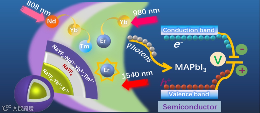 工作于近红外(NIR)I区和NIR II区的多波段窄带光电探测器(PDs)在生物分析、多色生物成像/传感、加密通信等领域具有重要的应用价值,成为一种高端的探测技术。目前,针对多波段窄谱带的NIR光电探测技术的研究,主要集中于集成多个不同带隙并且对NIR具有不同响应能力的红外半导体材料。这无疑会增加器件设计与使用的复杂性、稳定性以及制备成本。最近的一些研究表明,具有双光子或多光子泵浦特征的稀土上转换材料,可以将NIR光子转换为可见或紫外光子,并为较宽带隙的半导体所吸收,制备出性能优异的上转换PDs。而迄今为止,具有波长选择性的多波长窄带上转换PDs还没有实现。另外,由于稀土离子4fn-4fn跃迁的吸收截面较小,荧光量子效率较低,所以实现可探测到的上转换发光(UCL)需要相对较高的泵浦阈值。因此,对于弱NIR检测的上转换PDs的实现仍然存在挑战。