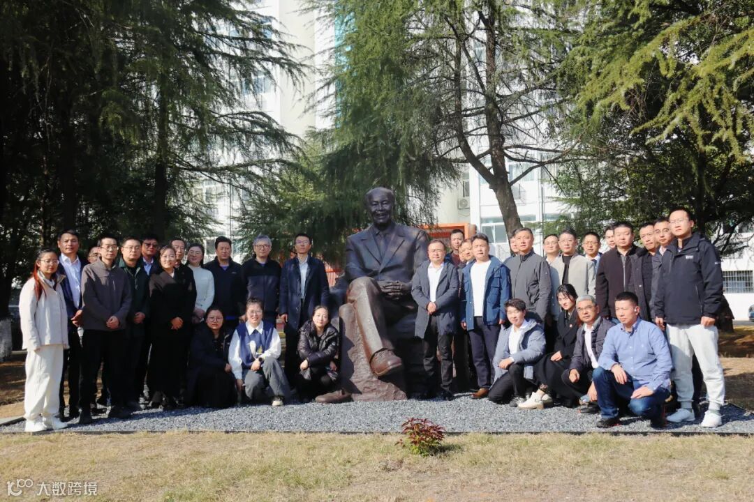 冬日的暖阳下,团队在际銮书院前方的潘际銮院士塑像前举行了庄严肃穆的瞻仰仪式。这尊潘院士的坐像由南昌大学建筑与设计学院教师杜小林设计,于2024年潘老诞辰97周年之际落成。雕像中的潘老面容慈祥,笑容温暖,和蔼地注视着从雕像前过往穿梭的莘莘学子。