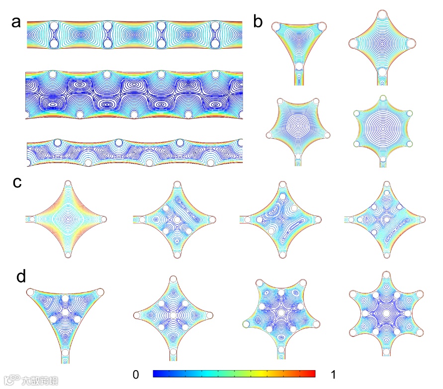他们利用COMSOL数值仿真软件进行了流体动力学模拟,可以精确地预测结构中涡流的模式,从而高效地设计涡流图案。