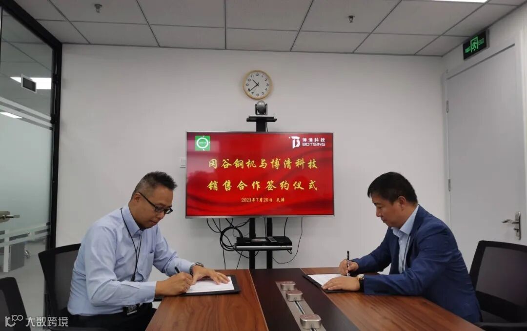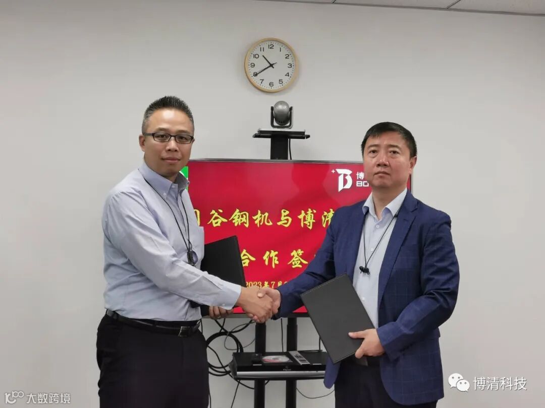 2023年7月20日,博清科技与日本冈谷钢机公司于天津签署合作协议,冈谷钢机(北京)贸易有限公司总经理荘田诚,项目经理计冠达,博清科技大市场中心总监时光等出席签约仪式。