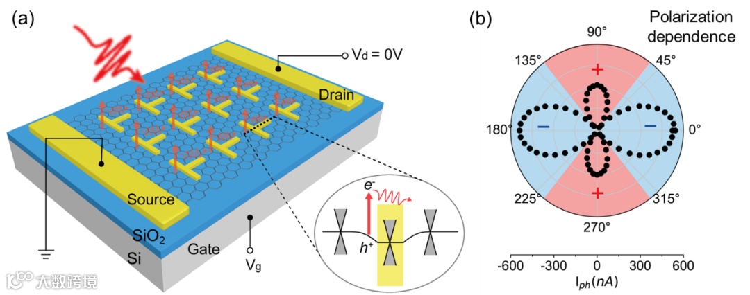 图1:(a)器件原理图。(b)光电流随入射光偏振角度的变化。