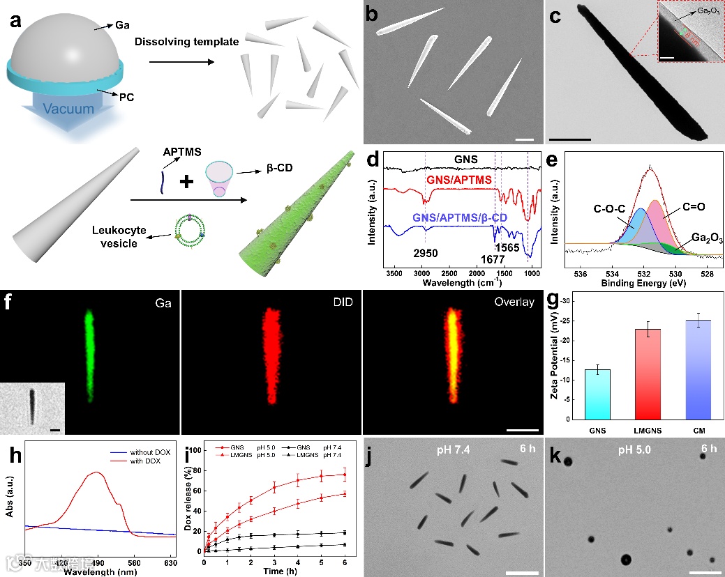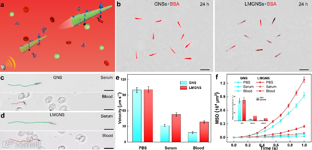 哈尔滨工业大学贺强团队报道了一种超声驱动的液态金属针状游动纳米机器人。该液态金属游动纳米机器人不但具有“终结者T-1000”类似的变形、融合能力,而且能够克服血液污损并完成主动药物递送和癌细胞光热治疗,相关成果以“Leukocyte Membrane Coated Liquid Metal Nanoswimmers for Actively Targeted Delivery and Synergistic Chemo-photothermal Therapy”为题发表于 Research上 (Research, 2020, 3676954, DOI: 10.34133/2020/3676954)。