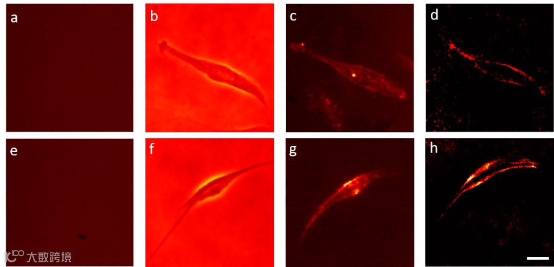图2. 相位型物体的边缘成像以及与传统成像方法的比较。第一行,测试的人脐静脉血管内皮细胞;第二行,人支气管上皮细胞。(a)和(e) 明场细胞成像; (b)和(f) 相衬对比度成像; (c)和(g) 暗场显微成像; (h-i) 边缘检测. 标尺,100 μm。