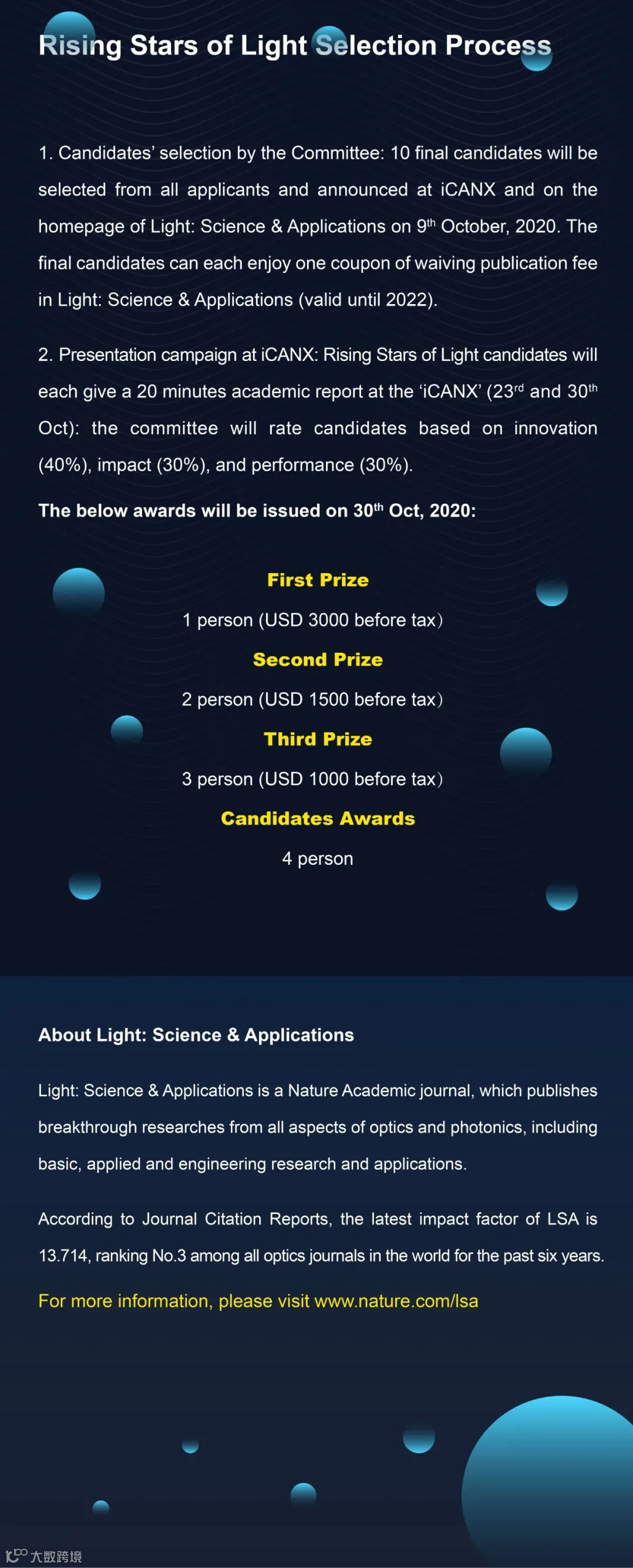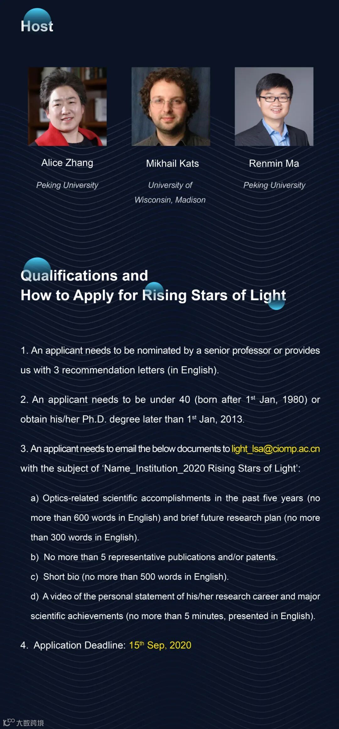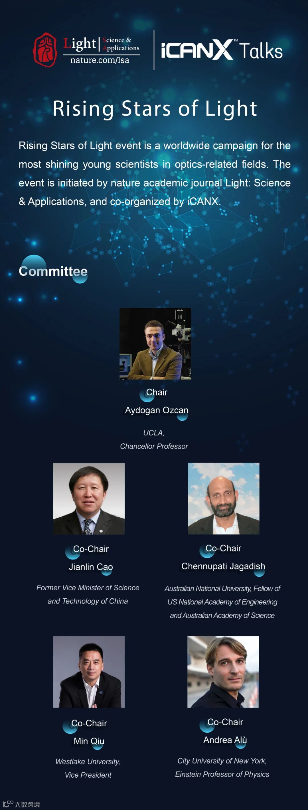 ,旨在选拔国际光学相关领域的顶尖后浪。2020年,由于COVID-19的影响,我们将与iCANX联手在线上举办评选活动,最终候选人将在iCANX Talks上