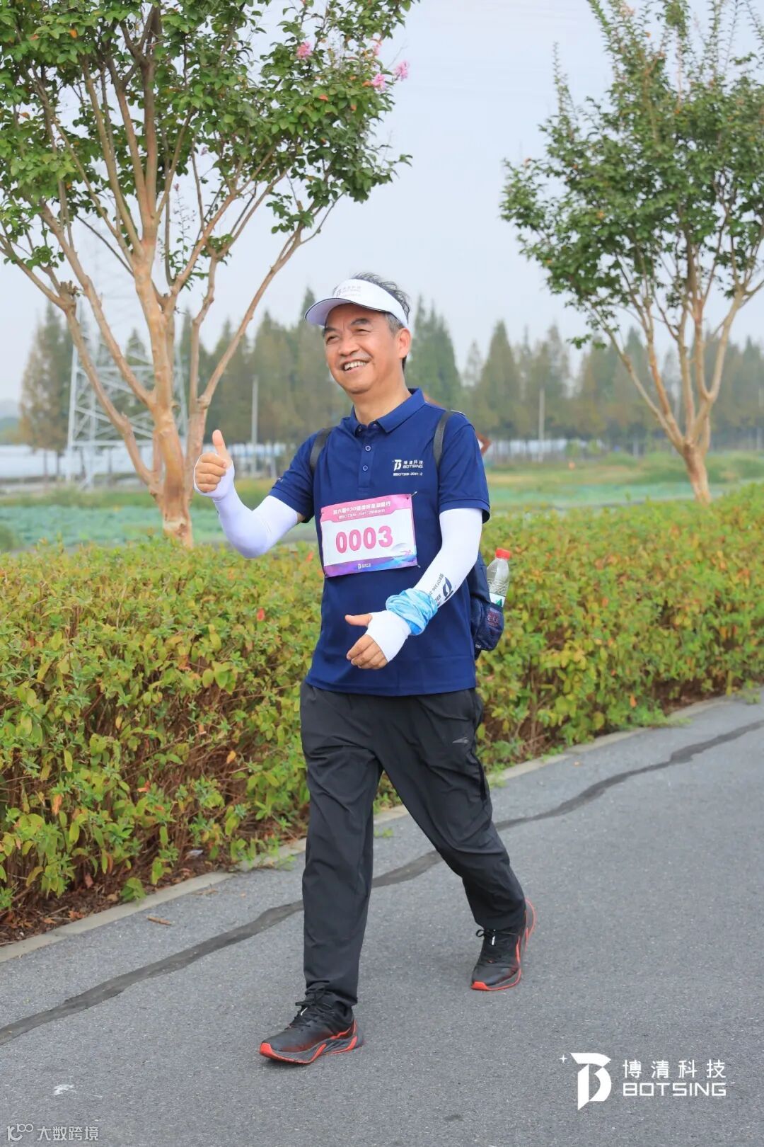 还有一些人和事也值得我们关注:在行进过程中,研发的程工还是电话不断,有问智焊中心有没有人收货、有问某工件图纸下发的怎么样了。行政部的凌同志,本身也是活动保障人员之一,同时作为党员,他一会电话呼叫保障团队哪里哪里需要送水,及时协调各种保障事宜,同时作为道路“清道夫”,在行进过程中看到路上偶尔留下的一些空瓶子、果皮等垃圾,都会捡起来收拾好并带到最近的垃圾桶。在18公里的体力瓶颈期时,看到江苏博清的段总坐在路边休息,主动要求扶段总到阴凉处休息,并把自己的水拿给段总补充水分,后边的几公里自己没有喝水,汗水流的本就不大的眼睛都睁不开,在21公里时又受到其他同事的赠水,大家一起靠着毅力坚持到补给点。这样的互相帮助、互相扶持,体现在我们毅行活动中,也一直发生在我们工作的每一个环节中、每一个项目中。