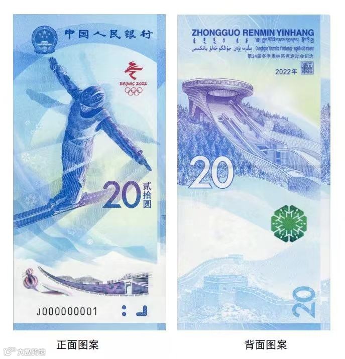 冬奥钞包括冰上运动项目纪念钞和雪上运动项目纪念钞各1张。