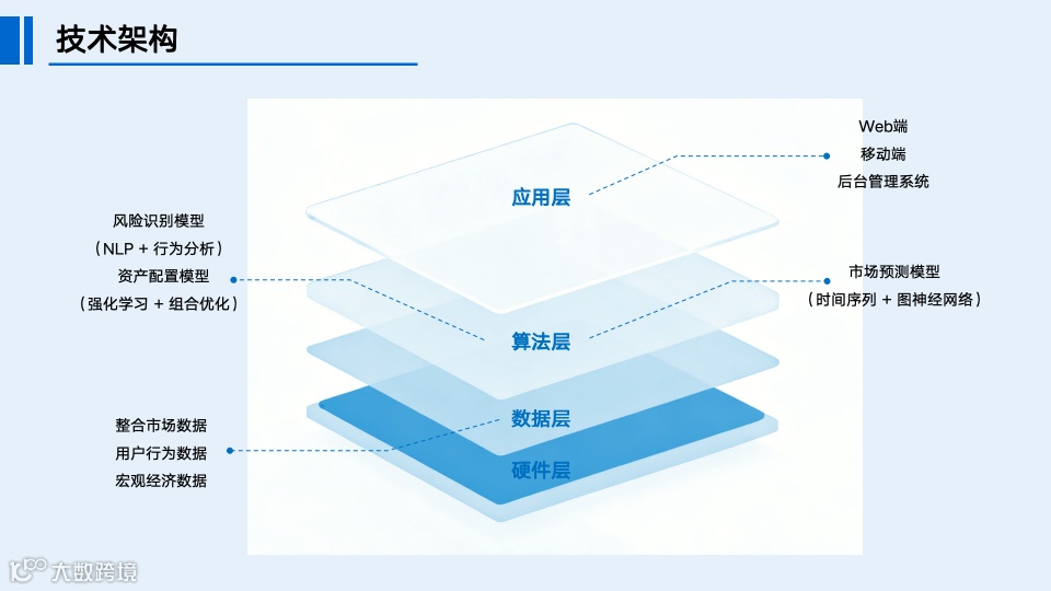 基于深度学习与自然语言处理技术,系统可快速完成用户风险偏好测评(准确率超 90%)、动态资产配置、实时市场解读等核心功能,投顾建议响应时间控制在秒级,大幅超越传统人工投顾的服务效率。