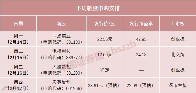 下周二的泓禧科技,是北交所虎年第二只新股,被称为“数码配件大王”;下周三的创业板新股大族数控,是“激光茅”大族激光的控股子公司,也是国内PCB(印制电路板)设备制造商龙头,值得关注。