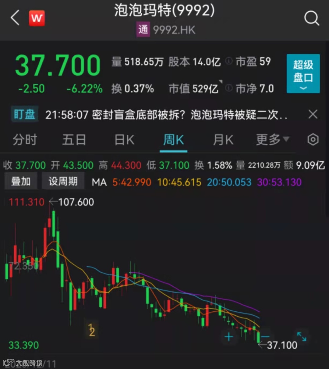 泡泡玛特破发
